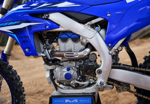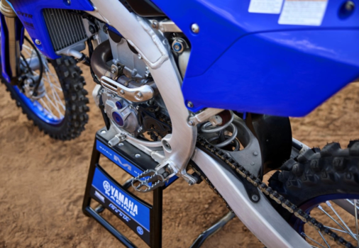 - Estructura de viga bilateral de aluminio avanzada Un avanzado chasis de aluminio de doble viga, basado en el emblemático YZ450F, proporciona la resistencia y flexibilidad justas para un equilibrio perfecto entre estabilidad y rendimiento en curvas. El resultado es una moto con mejor manejo, una sensación de ligereza y mayor tracción en la rueda delantera, lo que permite al piloto entrar en las curvas con mayor confianza y más opciones de trazada.